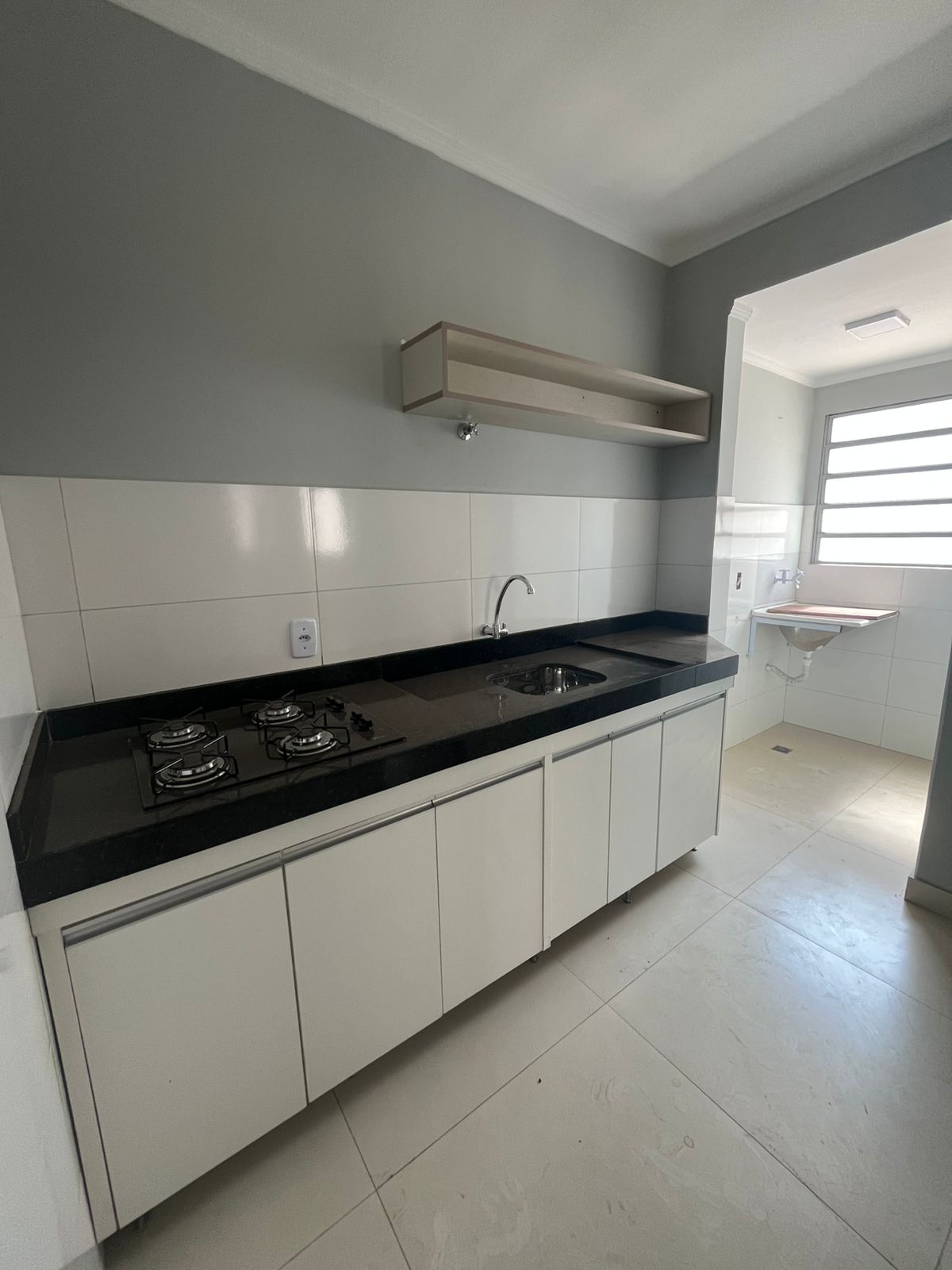 Cozinha com planejados e fogão cooktop